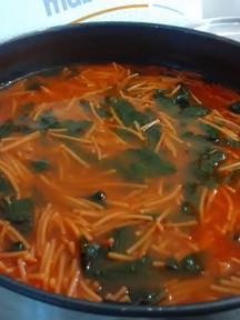 Sopa de fideo con espinacas